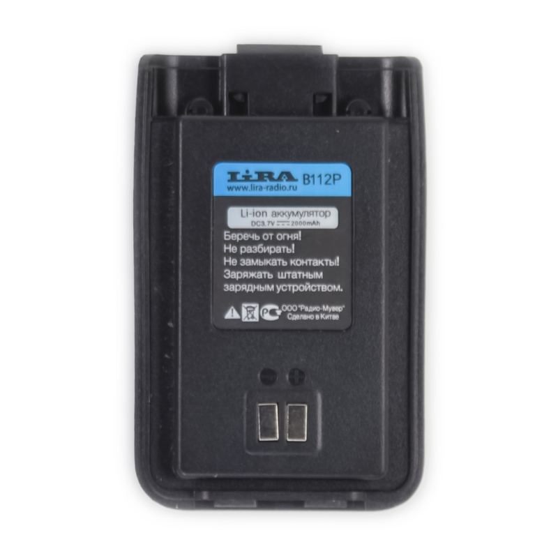 Lira B112-P - оригинальный элемент питания для радиостанции Лира P-112L емкостью 2000 мАч. Число циклов перезарядки 500. Химический тип элемента литий-ионный. Данный АКБ имеет низкий показатель саморазряда во время хранения. Рекомендуемый температурный рабочий диапазон от -20 до +60 °С. Габариты аккумулятора 82х53х12 мм, а масса всего 49 г. Запрещается подвергать механическим воздействиям (ронять, ударять, вскрывать), располагать вблизи огня и замыкать контакты.