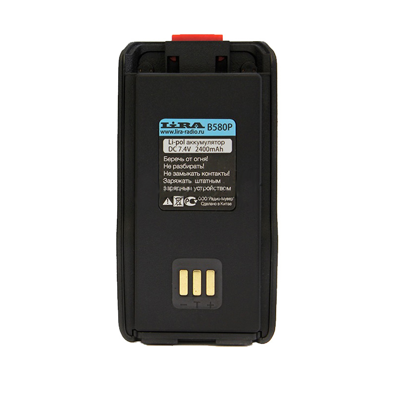 Lira B-580P аккумулятор номинальной емкостью 2400 мАч для двухдиапазонной радиостанции Лира P-580UV. Имеет напряжение 7.4 В и тип Li-Pol. Такой класс батарей эксплуатируется в температурном диапазоне от -20°С до +60°С. Рекомендуется не подвергать элемент питания воздействию дождя, снега, морской воды и любых других токопроводящих жидкостей. Не устанавливать влажный или загрязненный АКБ в зарядное устройство. Это может разрушить контактные площадки аккумулятора.