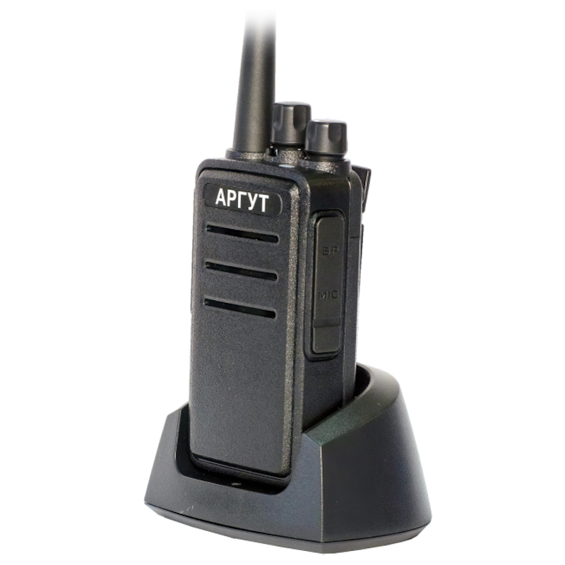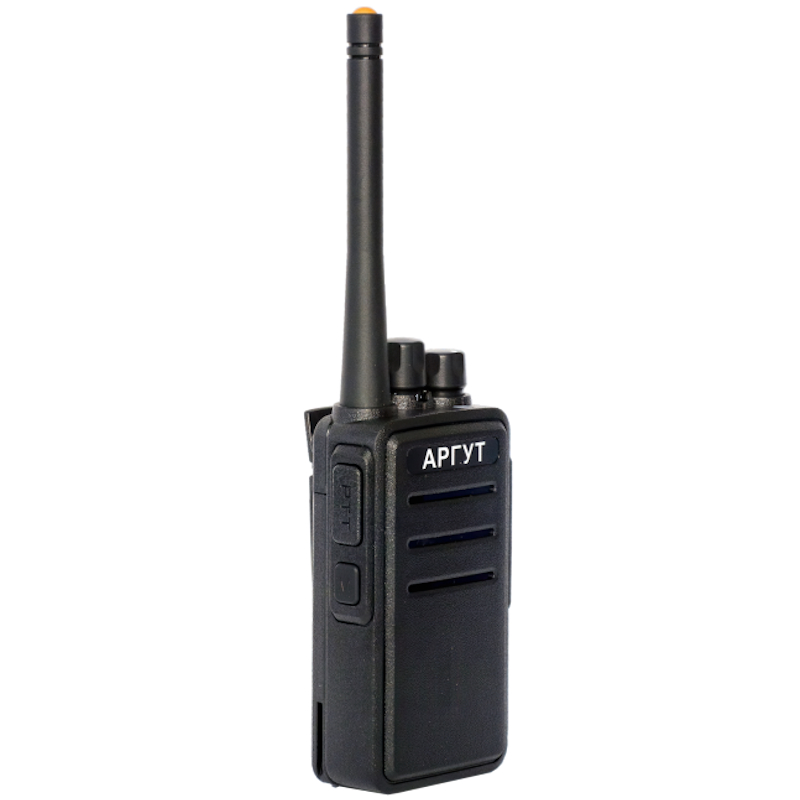 Аргут А-43 – портативная рация дециметрового диапазона. Максимальная мощность передатчика составляет 5 Вт. 16 каналов программируются через стыковку с компьютером. Их переключение осуществляется валкодером, находящимся на верхнем торце устройства. Для подтверждения правильности выбора без визуального контакта возможна активация голосового повторителя на русском языке. На корпусе расположена дополнительная программируемая кнопка для быстрого доступа к выбранной функции.