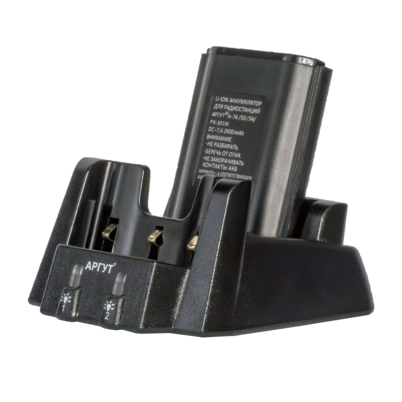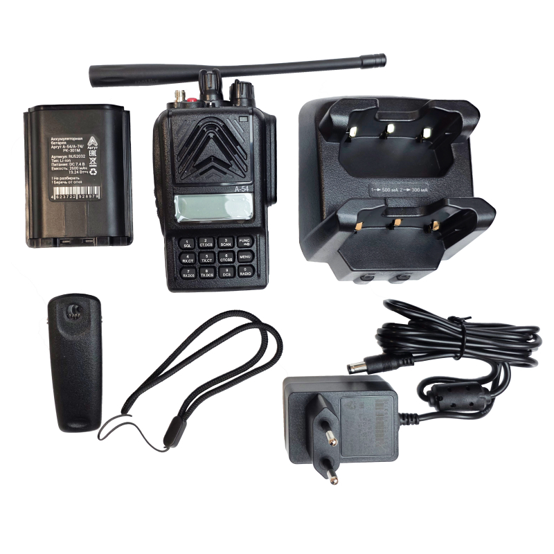 Аргут А-54 – весомая, надежная, защищенная (IP66) радиостанция. Построена вокруг цельнолитой металлической базы. Качественный прием сигнала обеспечивается супегетеродинным приемником. Мощность передатчика регулируется в 3 ступени и имеет предельное значение в 5 Вт. Рабочая полоса частот — 400-480 МГц. Клавиатура и экран предоставляют возможность оперативно изменять настройки и частоты каналов прибора без стыковки с компьютером. В зарядном "стакане" выделены отдельные места под рацию и АКБ. Предусмотрено подключение нескольких кредлов последовательно к одному блоку питания.