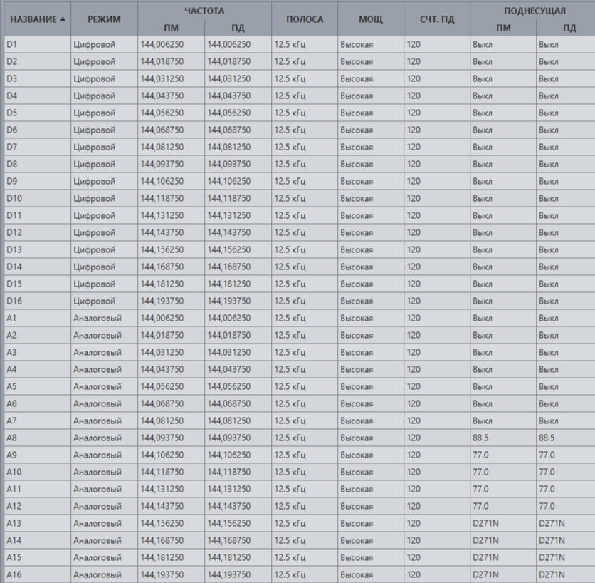 - Шаг сетки частот: 12,5 кГц/25 кГц;