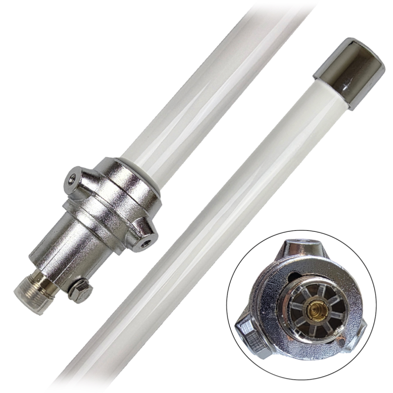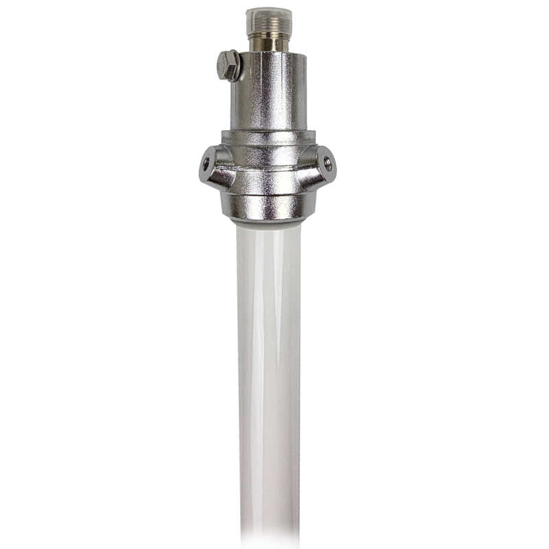 Аргут VHF ВС-100 - базовая антенна круговой направленности диапазона 134-174 МГц. Оборудование имеет высоту 1.7 метров и усиление 4.5 дБи. Конструкция массой 0.9 кг состоит из трех коллинеарных внутренних элементов в прочном корпусе из фибергласса. Такой материал прочен и устойчив к ветровым нагрузкам. В комплекте идут три противовеса. Крепление осуществляется к мачте диаметром 30-62 мм. Настройка антенны под необходимые частоты осуществляется через подрезку излучающего элемента согласно таблице прилагаемой с оборудованием. От размеров излучателя зависит коэффициент усиления. Не правильно подобранная длинна приведет к понижению характеристик, увеличению нагрева, а возможно и повреждению радиооборудования. В таблицах подрезки обычно указываются максимальные длины, а также допустимую погрешность, как правило не более 3 мм.