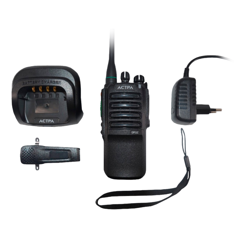Комплект поставки: приемопередатчик Астра DP.U2 DMR UHF, элемент питания, зарядная станция, блок питания, антенна UHF, темляк на руку, зажим с винтами крепления, инструкция по эксплуатации.