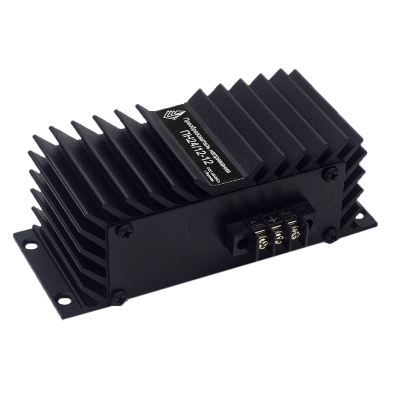 Базис ПН24/12-12 - понижающий преобразователь напряжения типа DC/DC с максимальным током нагрузки 12 А. Применяется для подключения радиостанций и дополнительного оборудования с напряжением 12 Вольт в транспортных средствах с бортовым питанием 24 Вольт. Обеспечивает электроэнергией приборы с суммарной потребляемой мощностью 150 Вт. Охлаждение производится за счет алюминиевого корпуса с теплоотводящими ребрами. Компактное исполнение 15,1×8×5,5 см предполагает расположение устройства в любом для него подходящем месте внутри салона ТС. Следует учитывать, что монтаж в подкапотном пространстве не допускается! Для безопасности применения предусмотрены несколько вид защит: от перегрузки по току, короткого замыкания, аварийного повышения напряжения и перегрева.