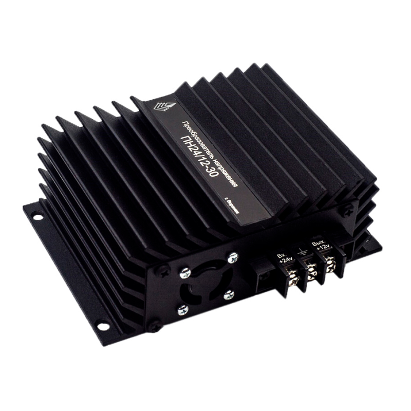 Макс. ток 30 А, напряжение вход 24 В, выход 12, DC/DC, срабатывание защиты 34 А, габариты 151×123×55 мм, активное охлаждение, импульсный тип, масса 0,76 кг.