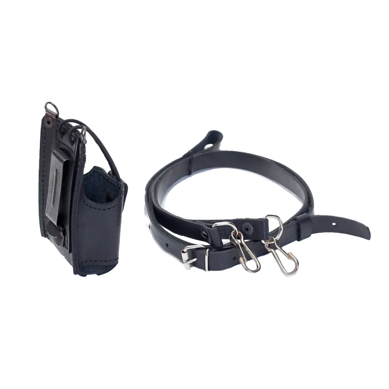 Чехол с ремнем для радиостанций Р-360 и Р-360М. Наплечный ремень удобен когда не возможно разместить устройство на поясе. Он обеспечивает защиту раций от внешних воздействий брызг, ударов, трения, а также гарантирует удобство при длительном ношении. Аксессуар выполнен из натуральной износостойкой кожи. На чехле предусмотрены отверстия и вырезы для доступа к клавишам и разъёму.