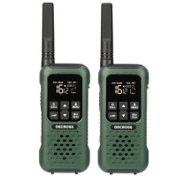 Decross DC93 Dark Green Twin - набор радиостанций в количестве двух единиц. Они работают в безлицензионном диапазоне PMR446 с рабочей частотой 446,00625 - 446,09375 МГц, что не требует получения специальных разрешений для их применения. Выходная мощность устройств 0,5 Вт. Станции оснащены 16 каналами связи и 121 субкодом, что позволяет организовать коммуникацию без помех и перекрестных переговоров. Корпус соответствует классу водонепроницаемости IP67, что означает полную защиту от пыли и возможность погружения в воду на глубину до 1 метра на 30 минут. При контакте с жидкостью LED-фонарик начнет мигать. С такой технической реализацией можно быстро обнаружить радиоустройство при случайном падении за борт, например, во время рыбалки. Станции оснащены функцией VOX и iVOX (голосовая активация). Их помощью абоненту не нужно нажимать на кнопку PTT для активации на передачу. Это полезно при выполнении задач, требующих свободных рук. Предусмотрен фонарик при эксплуатации раций в темное время суток. Питание от трех аккумуляторов емкостью 1000 мАч никель-металлогидридных типа или от стандартных батареек АА. Разъем питания microUSB. С его помощью восполнить заряд можно в любой момент от внешнего повербанка.