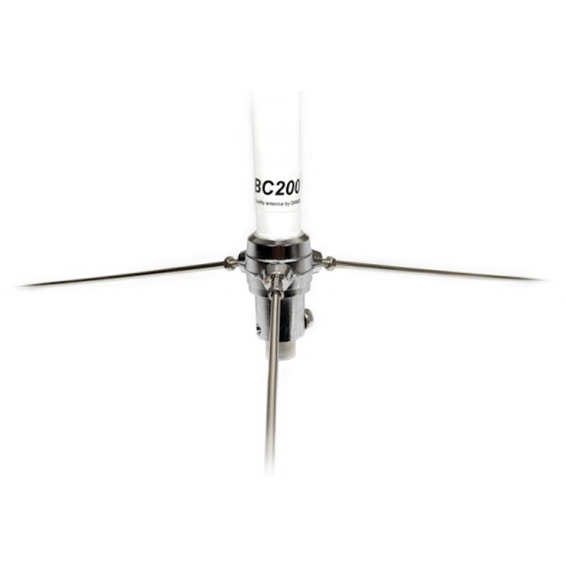 Diamond BC-200N - базовая антенна для работы в частотном диапазоне от 430 до 490 МГц. Состоит из трех коллинеарных излучателя, электрической длина каждого из которых составляет 5,8 длины волны. Имеет значительное усиление 6,5 дБи и рассчитана на работу с передатчиками мощностью до 200 Вт. Для подключения коаксиального кабеля используется разъем типа N-гнездо (N-Female). Конструкция ориентирована на суровые условия эксплуатации. Корпус выполнен из прочного стекловолокна (FRP), которое защищает внутренние элементы от влаги, ультрафиолета и механических воздействий. Общая длина устройства составляет 1.7 метра. Антенна способна выдерживать экстремальные ветровые нагрузки, скорость которых может достигать 60 метров в секунду. Для монтажа предусмотрено универсальное крепление, позволяющее установить устройство на мачту или трубу диаметром от 30 до 62 миллиметров.