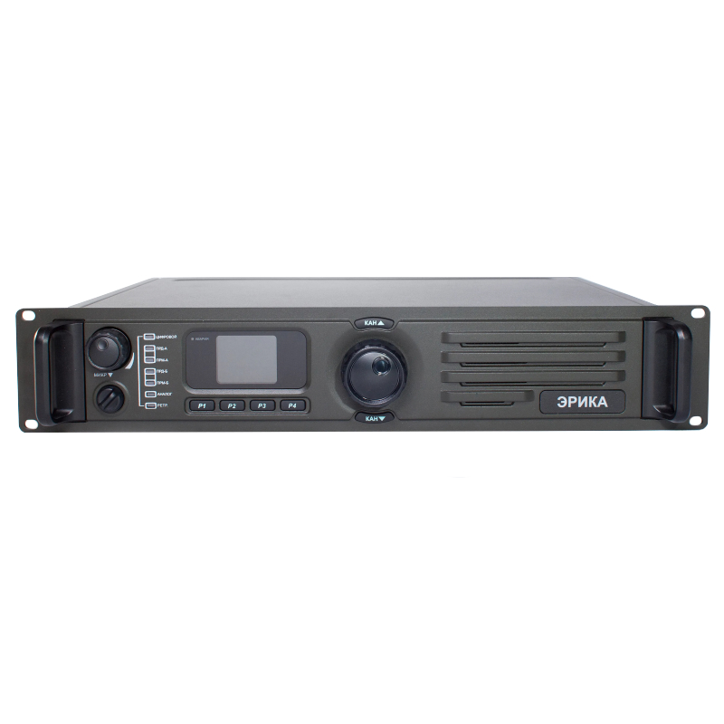 Эрика-Р161 - ретранслятор с работой в одном из двух частотных диапазонов от 136 до 174 или от 400 до 470 МГц, в зависимости от выбора модели. Поддерживает от 2 до 256 аналоговых и цифровых каналов. Количество смешанных каналов, способных автоматически переключаться между типами модуляции, достигает 16. Репитер имеет два основных режима работы: «Дежурный прием» и «Ретрансляция». Он автоматически распознает тип входящего сигнала на смешанных каналах, избавляя оператора от необходимости ручного переключения. Для удобства контроля состояние системы отображается на жидкокристаллическом дисплее и при помощи многоцветной светодиодной индикации, которая визуализирует режим работы (аналоговый или цифровой), активность приема и передачи для каждого слота, а также сигнализирует о неисправностях. С помощью специального программного обеспечения, поставляемого отдельно, можно настраивать рабочие частоты, субтонные коды CTCSS/DCS, время задержки выключения ретрансляции, пороги срабатывания встроенной системы охлаждения и многое др. Четыре программируемые кнопки на передней панели можно переназначить на такие функции, как блокировка клавиатуры, временное отключение ретрансляции, изменение уровня мощности и управление шумоподавителем. Стоит отметить поддержку дуплексного режима с временным разделением каналов (TDMA) в цифровом формате, что обеспечивает работу двух независимых логических каналов (слотов) на одной частоте, удваивая пропускную способность системы.