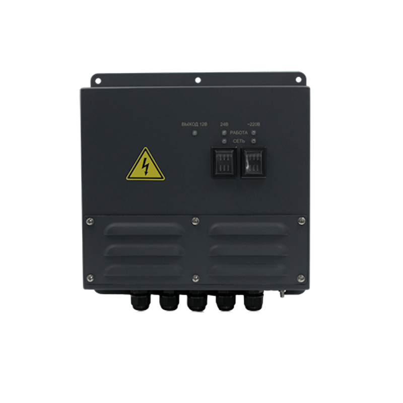Конструкция БП представляет собой износостойкий корпус, масса которого не превышает 5 кг, а размеры 295×275×110 мм. Степень защиты устройства IP22. Применяется при температурах окружающей среды от -10 до +55°C. Отдельным преимуществом является интеллектуальная система индикации, которая в реальном времени отображает наличие напряжения на обоих источниках питания и рабочий сетевой режим. Визуальный контроль работы осуществляется по световым индикаторам “Сеть 220 В”, “Сеть 24 В”, “Работа 220 В”, “Работа 24 В”, которые расположены на лицевой стороне. Предусмотрена защита от переполюсовки резервной сети 24 В. Она исключает повреждение электронных компонентов из-за неправильного подключения. Встроенные предохранительные элементы обеспечивают пожарную безопасность, а также устойчивость к электромагнитным помехам.