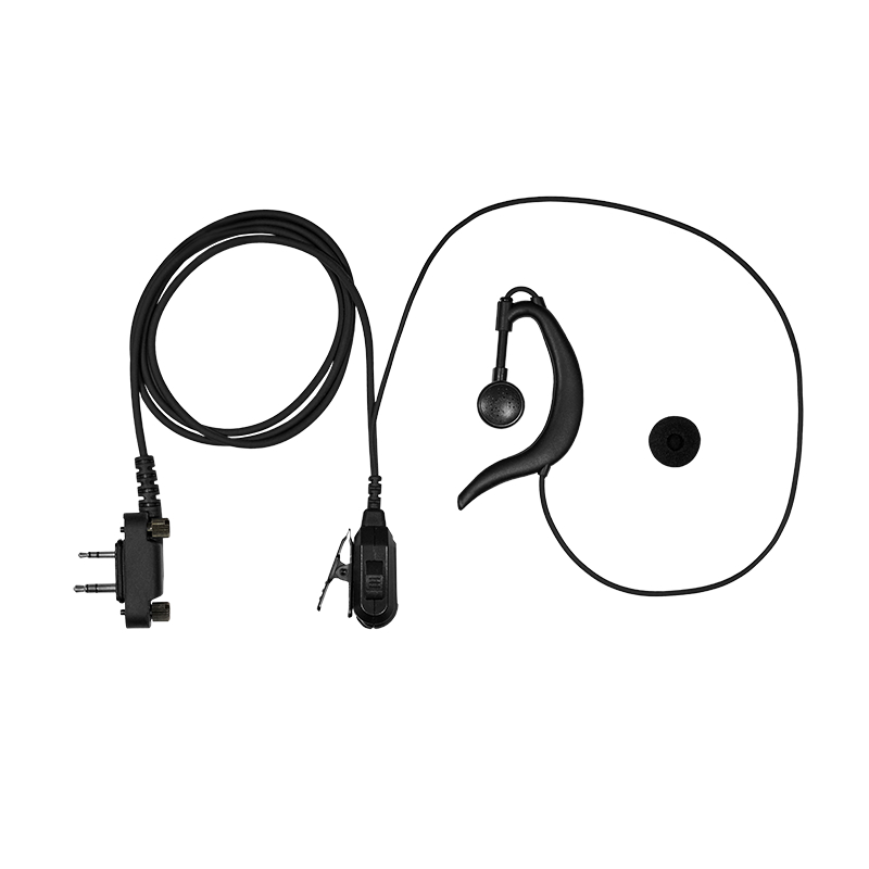 Racio LA-13K2/820 - двухпроводная гарнитура с С-образной заушиной. Такой крепления обеспечивает плотную и комфортную фиксацию на ухе. Для комфортной настройки под абонента, дужка наушника регулируется по высоте. Микрофон интегрирован с кнопкой PTT (Push-to-Talk). Совмещенный блок оснащен крепление. Его можно зацепить за любой удобный элемент одежды или униформы. Аудиоаксессуар оснащен разъемом типа K2, также известным как стандарт Kenwood. Надежное соединение к рации Racio R820 осуществляется при помощи винтового крепления, тем самым сохраняя влагозащиту станции IP68 при использовании гарнитуры. А также исключает случайное отсоединение штекера и гарантирует стабильный контакт даже при постоянных физических нагрузках. Компактный вес всего в 40 граммов делает устройство практически неощутимым при длительном ношении, а длина кабеля от 130 сантиметров предоставляет абоненту необходимую свободу движений.