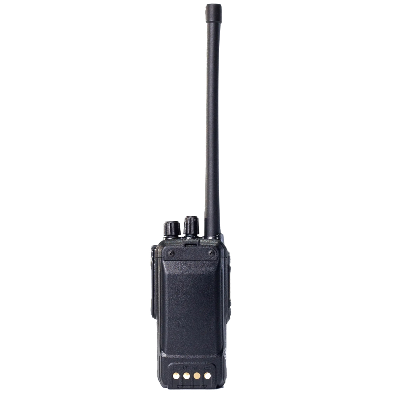 Конструктивные особенности. Трансивер имеет версии двух диапазонов 136-174 и 400-470 МГц. Максимальная мощность до 5 Вт в VHF и до 4 Вт в UHF. Для экономии заряда батареи или работы на коротких дистанциях можно использовать пониженную мощность 2 Вт. Рядом с кнопкой PTT расположены две функциональные клавиши, которым можно назначить наиболее важные функции для оперативного доступа к ним. Режим работы, состоянии связи и уровень аккумулятора Li-Ion 2000 мА ч визуально контролируется по световой индикации. Предусмотрена защита от проникновения пыли и мощных струй воды IP67. Широкий температурный диапазон эксплуатации от -25 °C до +55 °C способствует к применению устройства в различных климатических поясах. Компактная и легкая конструкция удобна для постоянного ношения на поясе и использования в течение длительного времени.