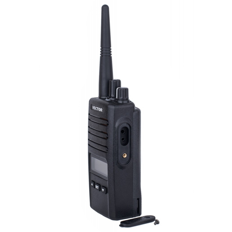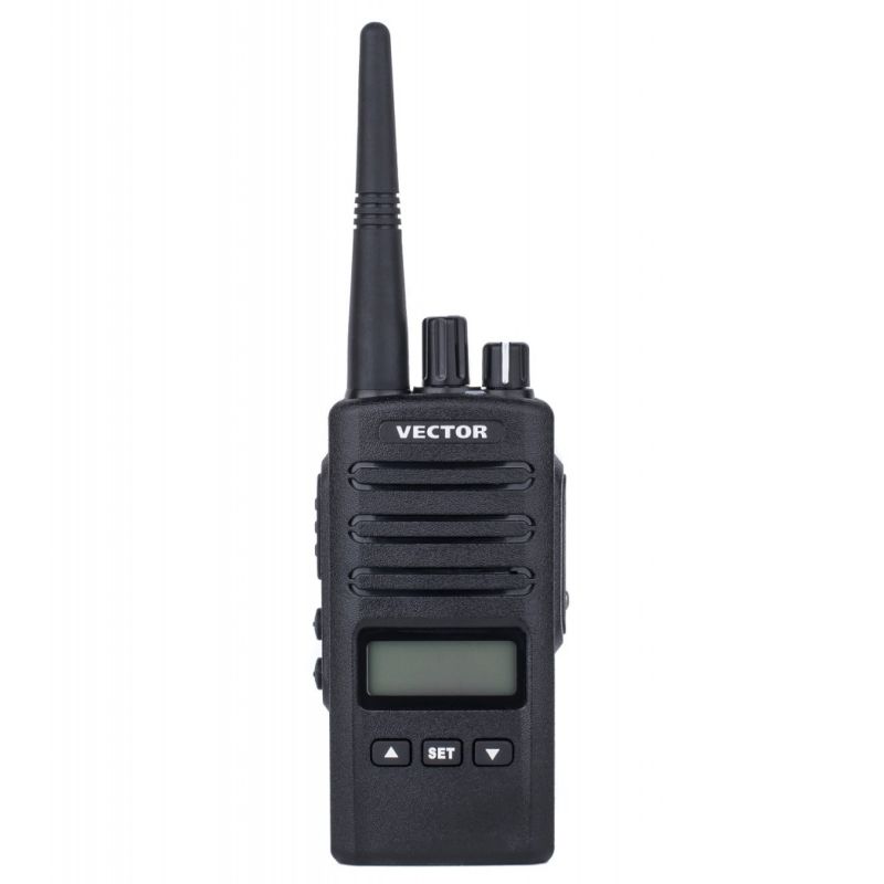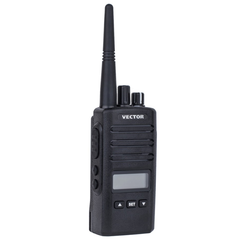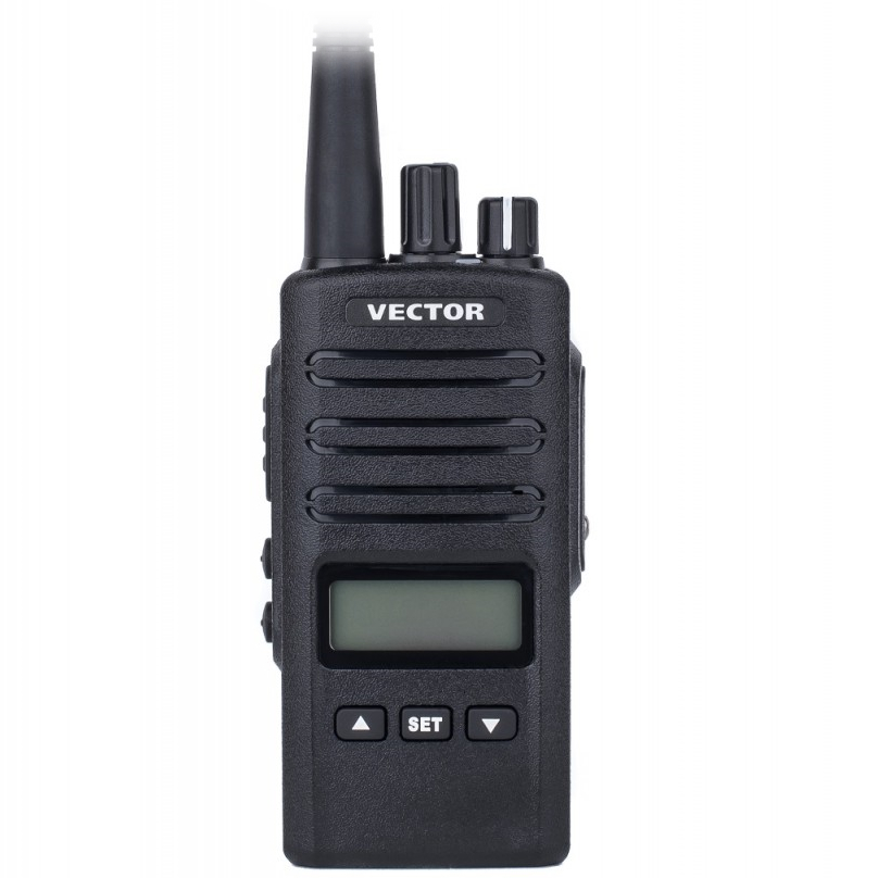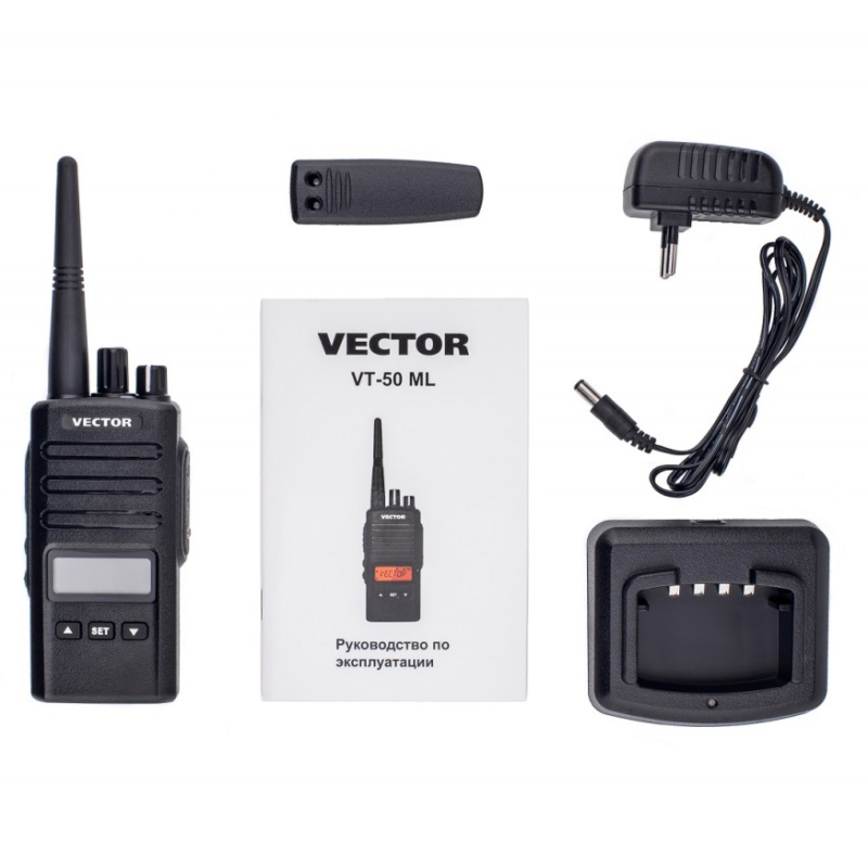 Vector VT-50 ML – коммуникационный терминал, защищенный от пыли и влаги по IP55. Дисплей и функциональные клавиши обеспечивают удобный, быстрый доступ к меню настроек. Память предоставляет 200 ячеек для записи частот в пределах рабочей полосы рации 400-470 МГц. Аккумуляторная батарея имеет ёмкость 2600 мАч. Дополнительно к валкодерам громкости и переключения каналов предусмотрены 3 клавиши на лицевой панели и 2 клавиши под кнопкой PTT.