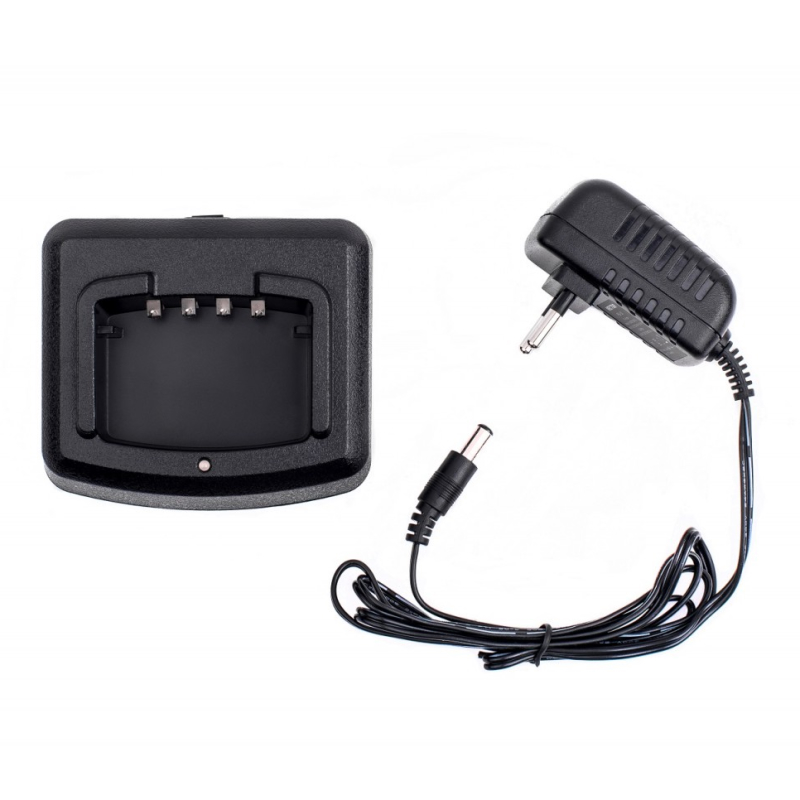 В коробке: радиостанция, антенна (SMA-гнездо), аккумуляторная батарея, зарядный "стакан", адаптер 220 В, крепление на ремень, инструкция по эксплуатации.