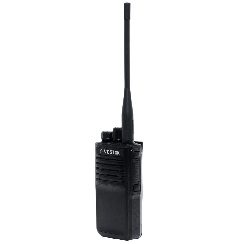Vostok ST-103 - профессиональная двухдиапазонная рация. Стоит отметить, что изначально устройство прошито на полосу частот UHF. При подключении к ПК, можно настроить и на диапазон VHF. Поддерживает безлицензионные частоты LPD и PMR. Использование радиостанции в этих частотных отрезках с установленной мощностью до 0,5 Вт не требует получения специальных разрешений на эксплуатацию в соответствии с законодательством Российской Федерации. Доступно 200 каналов памяти. Максимальная мощность передачи сигнала 10 Вт. Трансивер комплектуется штатным аккумулятором Li-Ion типа высокой ёмкостью 4200 мАч. При этом доступен режим энергосбережения для увеличения работы без подзарядки. Восполнить заряд можно через зарядное устройство типа "стакан" или на прямую через кабель и универсальный порт Type-C. Конструкция радиостанции водонепроницаема по стандарту IP68. Он предусматривает полную защиту от пыли и влаги, с возможностью погружения в воду. Конфигурация приемопередатчика осуществляется через персональный компьютер. При этом открывается возможность назначить на программируемые боковые кнопки КН1 и КН2 такие опции, как сканирование каналов, активацию голосового управления VOX, изменение выходной мощности, подачу сигнала тревоги. Рация поддерживает субтональное кодирование CTCSS/DCS, которое дает возможность слышать только своих собеседников, игнорируя посторонние переговоры на том же канале. Также реализованы такие полезные режимы, как двойное прослушивание (DUAL Wait), ограничение времени передачи (TOT) для экономии заряда батареи и предотвращения перегрева.