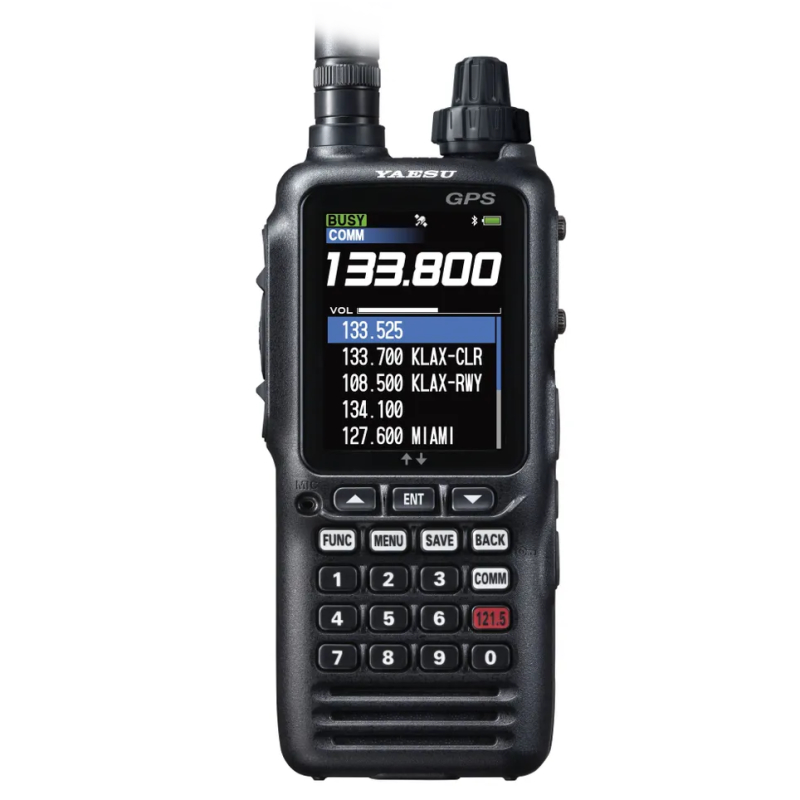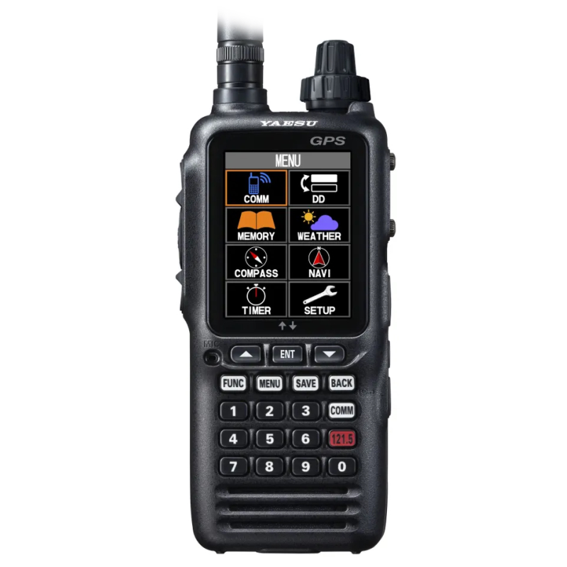 Yaesu FTA-850L - портативная рация авиационного диапазона. Выходная мощность передатчика до 6 Вт. Для отображения информации используется 2,4-дюймовый цветной TFT-дисплей с разрешением 240 на 320 пикселей. Экран одновременно отображает две частоты, значительно упрощая управление. Конструкция радиостанции соответствует строгому стандарту влагозащиты IPX5, а также прошла испытания на ударопрочность по военному стандарту MIL-STD-810H. Питание осуществляется от литий-ионной батареи емкостью 2200 мАч. Для хранения данных доступно 200 каналов памяти с возможностью их программирования. Одной из ключевых особенностей передатчика является функция Dual Frequency Display (DD). Данный режим позволяет одновременно отображать на экране две частоты - верхнюю и нижнюю. Активный канал, доступный для приема и передачи, выделяется белым цветом текста. Переключение между ними осуществляется мгновенно одним нажатием клавиш. Это незаменимо при необходимости мониторинга двух критически важных частот, например, диспетчерской службы и аварийного канала. Встроенный модуль Bluetooth позволяет осуществлять беспроводную связь с совместимыми гарнитурами, например, с опциональной моделью SSM-BT10, обеспечивая свободу движений пилота. Благодаря встроенному высокочувствительному 66-канальному GPS-приемнику радиостанция предоставляет полный спектр навигационных данных. На экране компаса в реальном времени отображаются курс над землей (COG), путевая скорость (SOG) и высота (ALT). Навигация дает возможность прокладывать маршруты через заранее заданные путевые точки, сохранять их в памяти и следовать по ним.